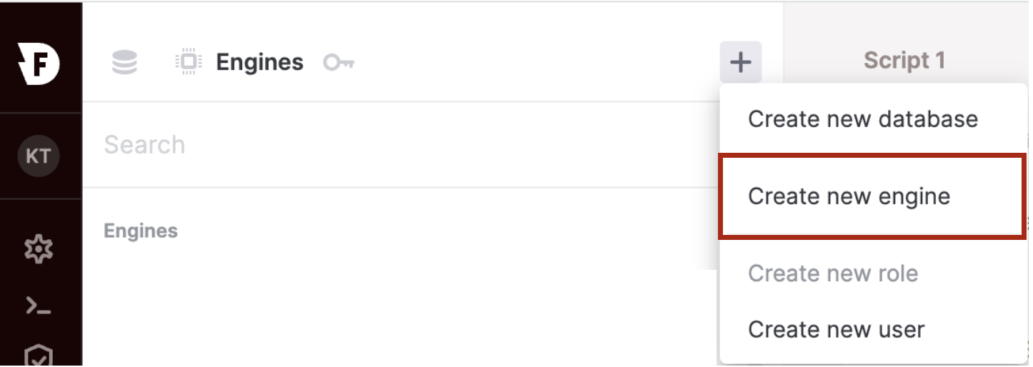 You can create an engine using SQL scripts or through the UI in the Develop Space.Create an engine using the UI